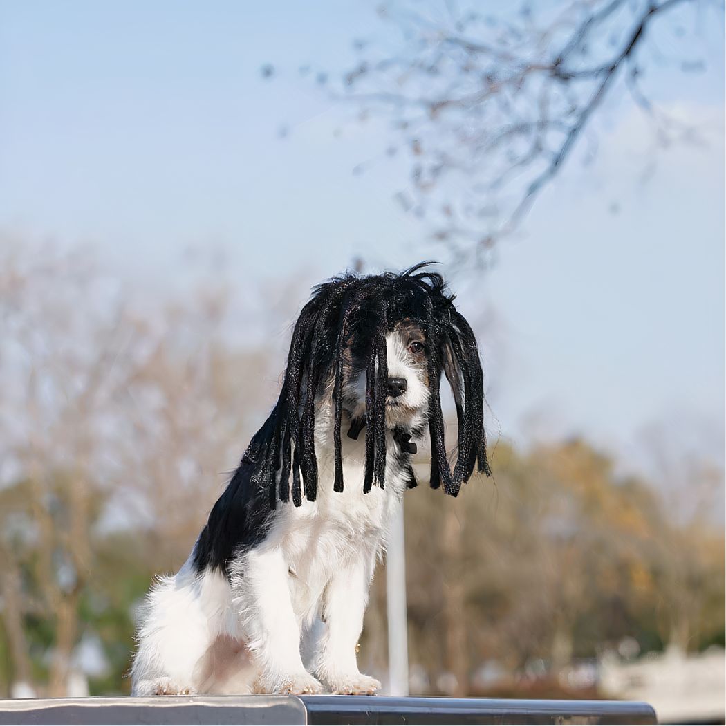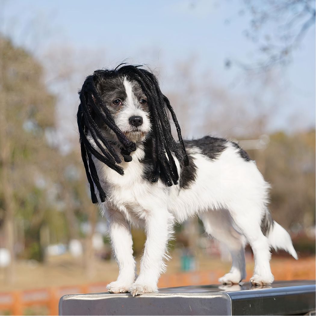 Achetez la perruque dreadlocks la plus amusante pour tête de chien sur le marché ! Cette perruque est parfaite pour déguiser votre animal pour les fêtes d’Halloween ou tout simplement pour le rendre unique et rigolo. Les dreadlocks sont amusantes et originales, votre chien va adorer ! N’hésitez pas à en. commander d’autres, vous allez beaucoup rire.