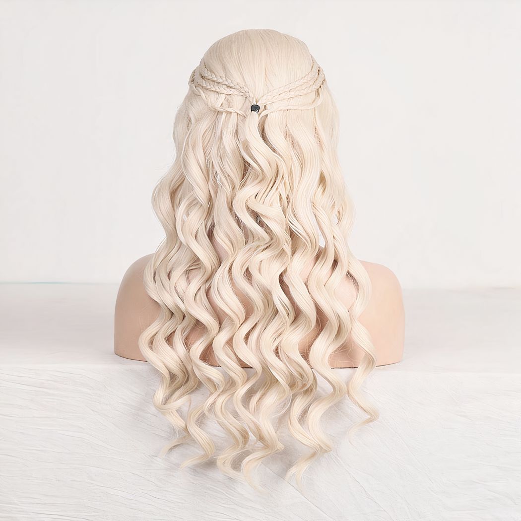 Daenerys Targaryen est une personne puissante et charismatique de la série télévisée à succès Game of Thrones. Sa chevelure blonde et ondulée est une caractéristique distinctive de son look et de son image. Cette perruque blonde Daenerys Targaryen est un excellent moyen pour les fans de la série de recréer le look unique de Daenerys.