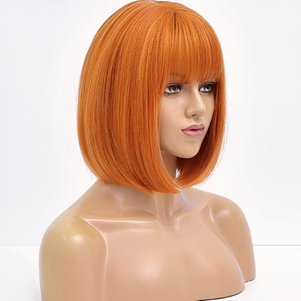 La perruque rousse à frange est un must-have pour les femmes audacieuses. Les cheveux mi-longs et lisses vous rendront glamour et la touche finale est la frange droite vous fera un regard de foudre. Elle ajoute un look glamour et sophistiqué à n’importe quelle tenue. La perruque a une bonnet en coton qui s’adapte parfaitement à la forme de votre tête, ce qui la rend confortable à porter toute la journée.