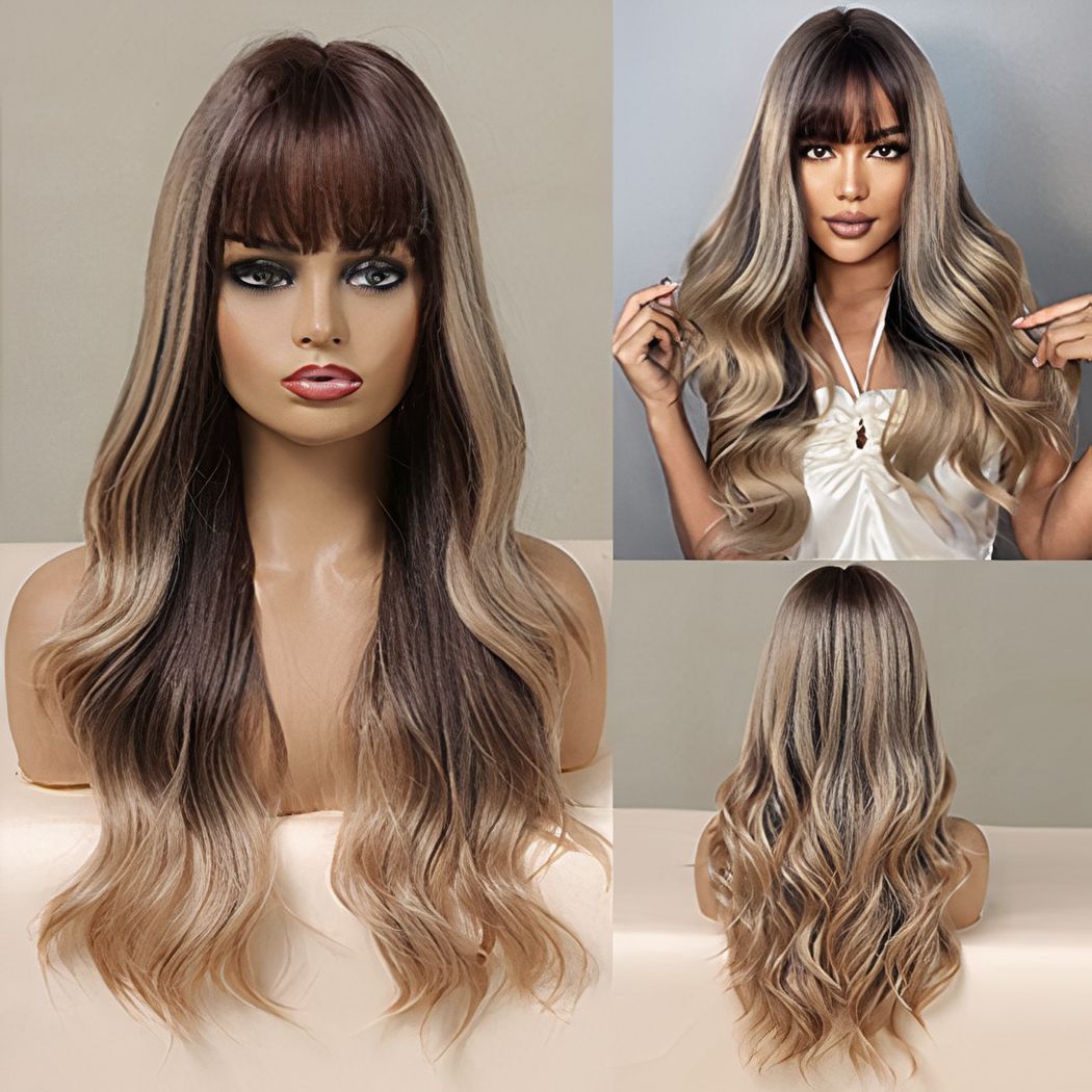 La perruque cheveux long est tout simplement une manière facile et rapide pour avoir les cheveux longs ondulés et bouclés dont vous avez toujours rêvé ! La frange est un plus pour cette perruque, qui vous donne une allure glamour et vous permettra de mettre en valeur votre visage. Coiffez la droite ou en rideau selon votre style.