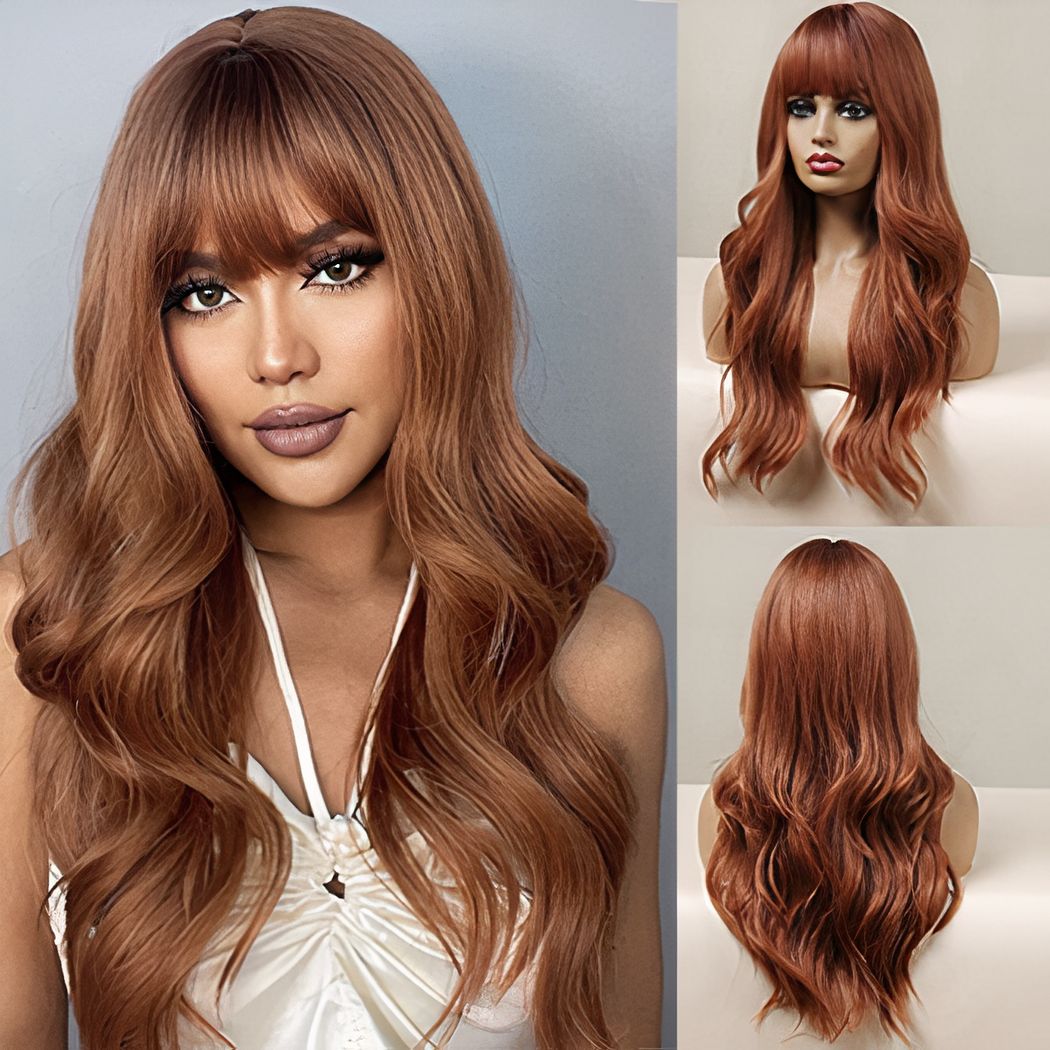 On rêve de cheveux longs et ondulés et on a pas envie de passer des heures dans la salle de bain a en prendre soin et à se faire des boucles parfaites alors on opte pour une perruque. Cette superbe perruque à frange vous donnera de l’allure et du style, disponible dans différentes colorations.