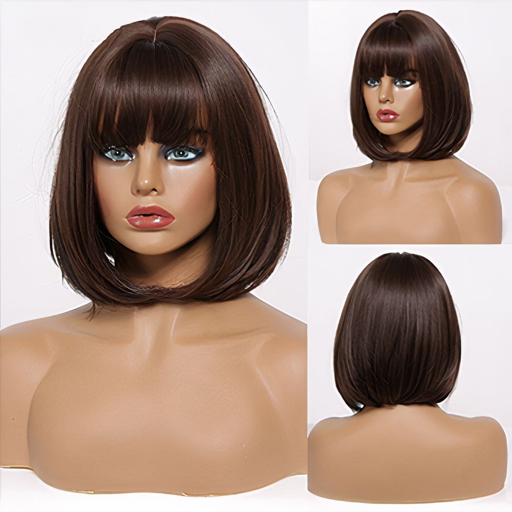Une jolie perruque que vous pourrez porter au quotidien ou pour des occasions spéciales. La coupe courte rend toutes les femmes chics et les cheveux lisses vous donnent une allure élégante. La frange tombe juste sous les sourcils pour ajouter une touche de mystère. En blonde ou en brune, cette perruque est très féminine.