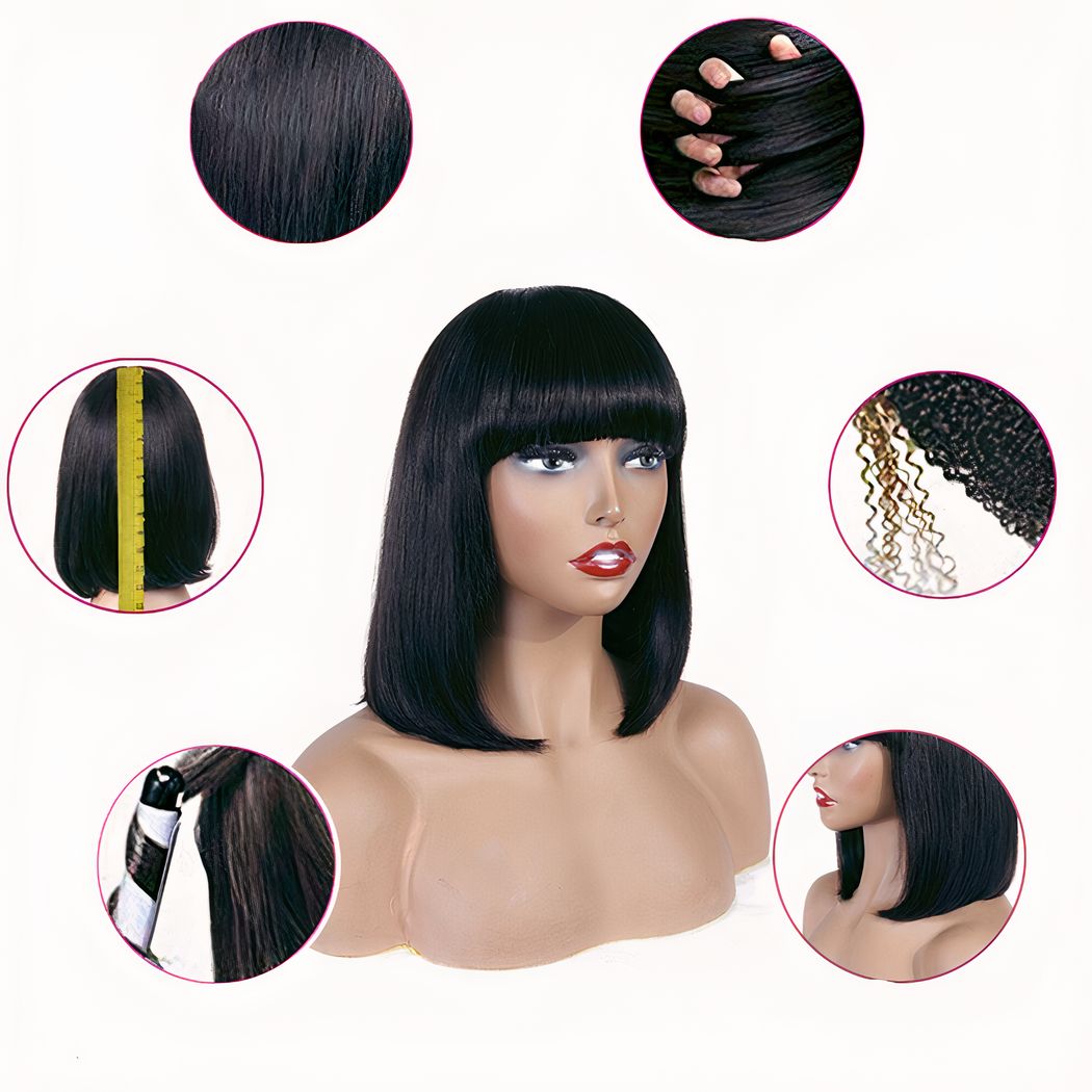 Notre perruque brune carré avec frange est un produit de qualité qui offre une belle apparence et un bon maintien. Cette belle perruque est fabriquée en cheveux humains de haute qualité et les brins sont très doux au toucher. La frange est assez longue pour couvrir tout le front et les côtés du visage. Cette perruque est parfaite pour les occasions spéciales comme les soirées ou les fêtes. Sélectionnez la longueur qui vous convient.